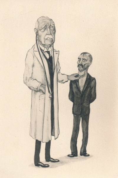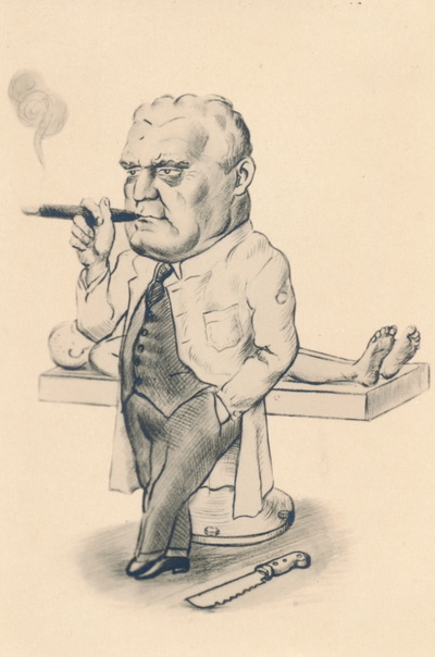 De internist-nefroloog Dr. Gideon Schrijver schonk het Trefpunt foto's van de caricaturen van een tiental Leidse hoogleraren. De foto's hingen in de werkkamer van zijn vader, de internist Hans Schrijver (1917-1988).