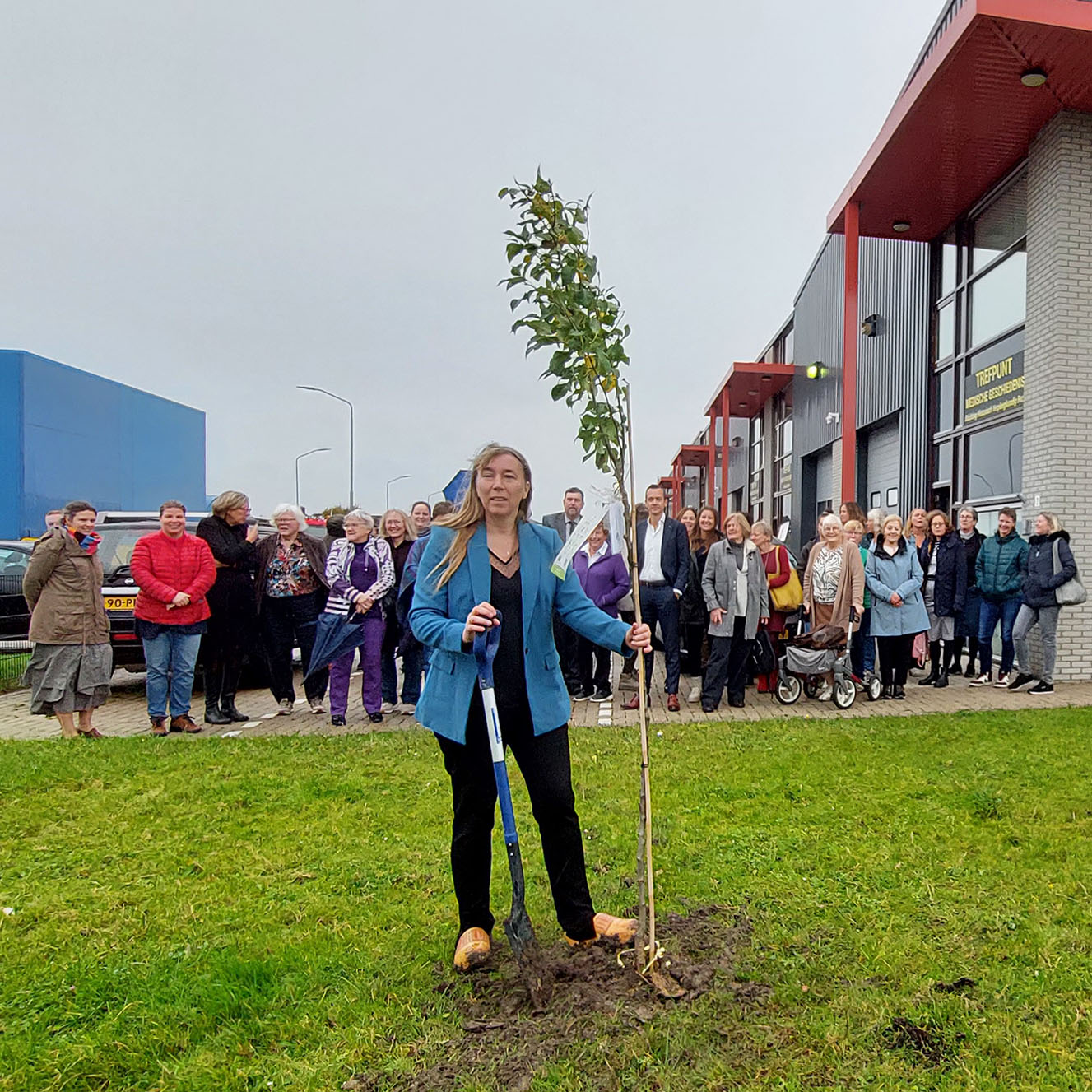 - Op 10 november 2023 vierde het Pensioenfonds voor Verloskundigen haar 50-jarig bestaan met een bijeenkomst in het Trefpunt. Bij die gelegenheid plantte het bestuur een boom. Op de foto het bestuur, v.l.n.r. Sjaak Toet, Susanne van Steijn, Esther van Weerdenburg, Corien van der Haar, Arma Kaan en Linda van Eijck.
